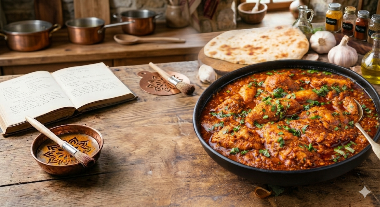 A spicy, garlicky, and rich chicken curry with thick masala ready to enjoy!